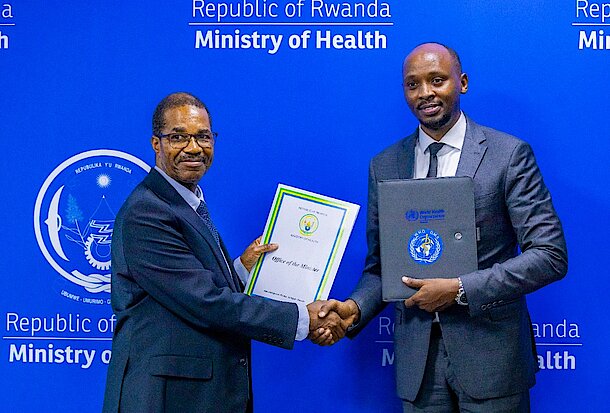 Kigali 13 February 2023 - The Ministry of Health has signed a Memorandum of Understanding (MoU) of partnership with the World Health Organization (WHO) Rwanda Office, and received a fleet of eight support vehicles to strengthen national emergency preparedness.