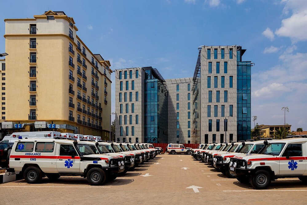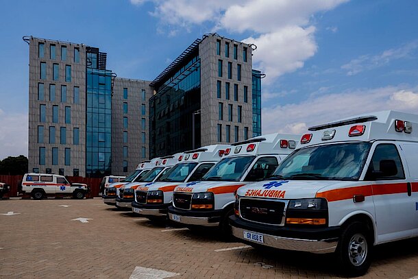 In Rwanda, one ambulance serves about 30,000 people. The goal of the Rwandan government is to have one ambulance for 20,000 people. This is a good indicator compared to the WHO standard.